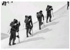 這幅漫畫中可以看出速度并不快,而考慮到攀登珠峰之困難, 其實每一次向上前行都需要 登山者超乎常人的意志力和耐力,由此可以提煉出“攻堅克難”這一觀點。為此可以回扣漫 畫進行解釋,然后結合黨的發展歷程說明攻堅克難的重要性。